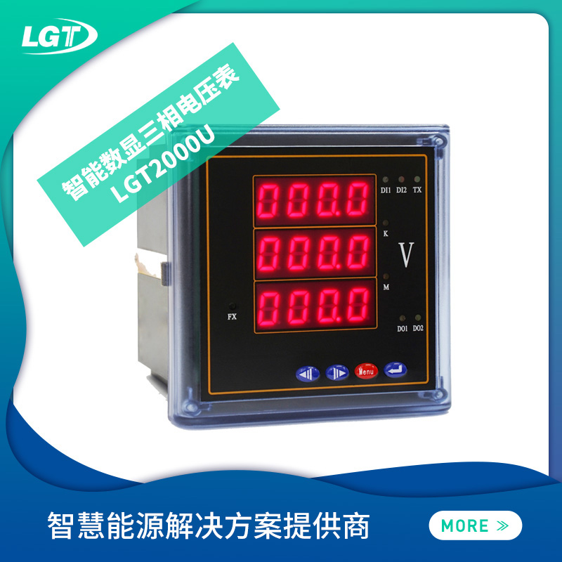 LGT2000U智能數(shù)顯三相電壓表適用于電力電網(wǎng)、自動化系統(tǒng)中對電流、電壓的電參數(shù)測量和顯示,通過面板設(shè)置倍率,直觀顯示系統(tǒng)一次側(cè)運行點參數(shù),具有精度高、穩(wěn)定性好、抗震動等優(yōu)點,可直接替代原有指針式儀表。